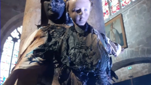 A fire broke out in the oratory of the Basilica of Notre-Dame de Bon-Secours in Guingamp during a Monday mass, partially burning a statue of the Virgin and Child. While investigations have not yet confirmed the origin, the local church association stated the act appeared deliberate, citing the absence of any heat source near the statue and the repeated targeting of the church with arson attacks.