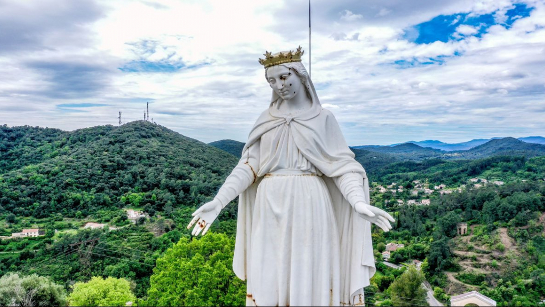 A statue of the Virgin Mary overlooking the Notre-Dame-des-Mines chapel in Alès was found riddled with bullets alongside other damage like graffiti and stones thrown at the roof, prompting an investigation and a public fundraising campaign.