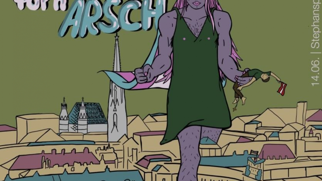 The incident concerns a post published on 27 May 2025 by the Instagram account “Marsch fürn Arsch,” which has been associated with the organisation of counter-protests against the Vienna March for Life. The graphic depicts a giant holding the lifeless body of a human figure. The figure is shown holding an Austrian flag and wearing a crucifix, visually identifying it as a Christian symbol.