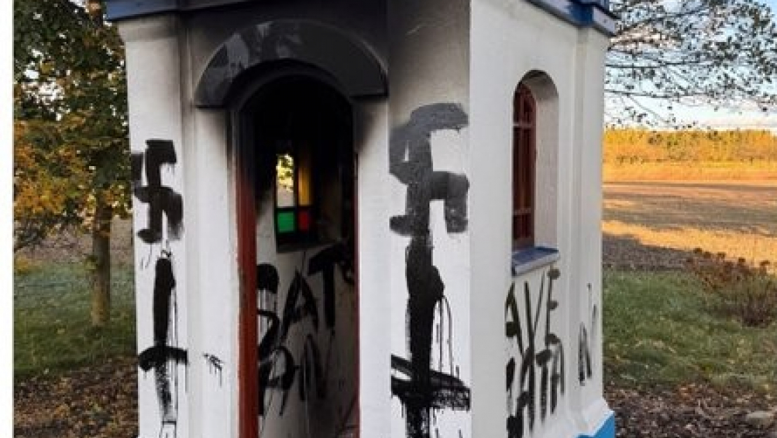 A roadside chapel dedicated to the Virgin Mary was desecrated with satanic graffiti and swastikas in Wólka Wybraniecka. The statue was also destroyed.