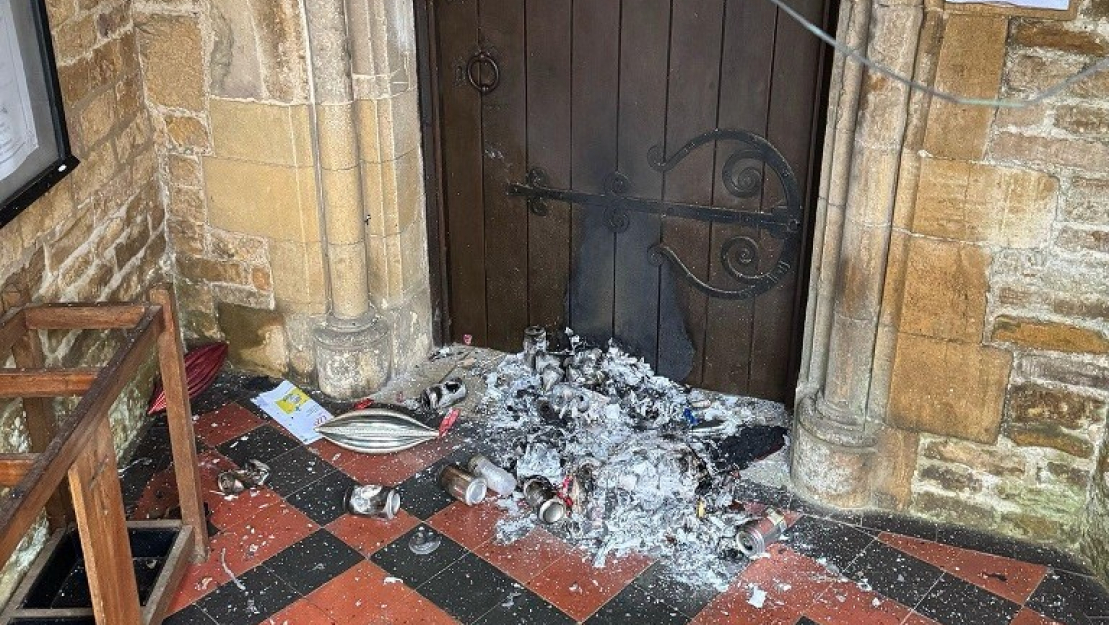 The Anglican and Methodist Church of St Giles was twice targeted by arson when rubbish was set on fire at its entrances—causing damage to the church door and prompting police appeals for information.