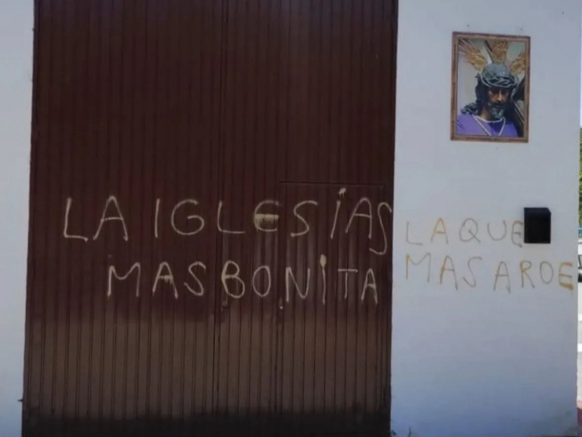 A Mairena del Aljarafe association of Catholic faithful was targeted in a vandalism incident when the exterior of its premises was defaced with the anti‑Catholic slogan "The most beautiful church is the one that burns the most."".
