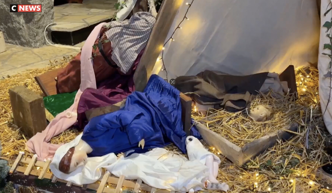 A Nativity scene inside a church in Le Passage, France, was vandalised in early January 2026, with the statue of the infant Jesus decapitated and dismembered and other figures broken.