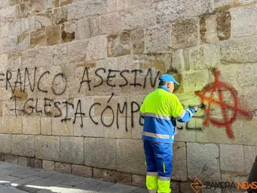 Vandals defaced Zamora’s Church of Santa María la Nueva with slogans accusing the church of being "accomplice" of Franco and anarchist graffiti.