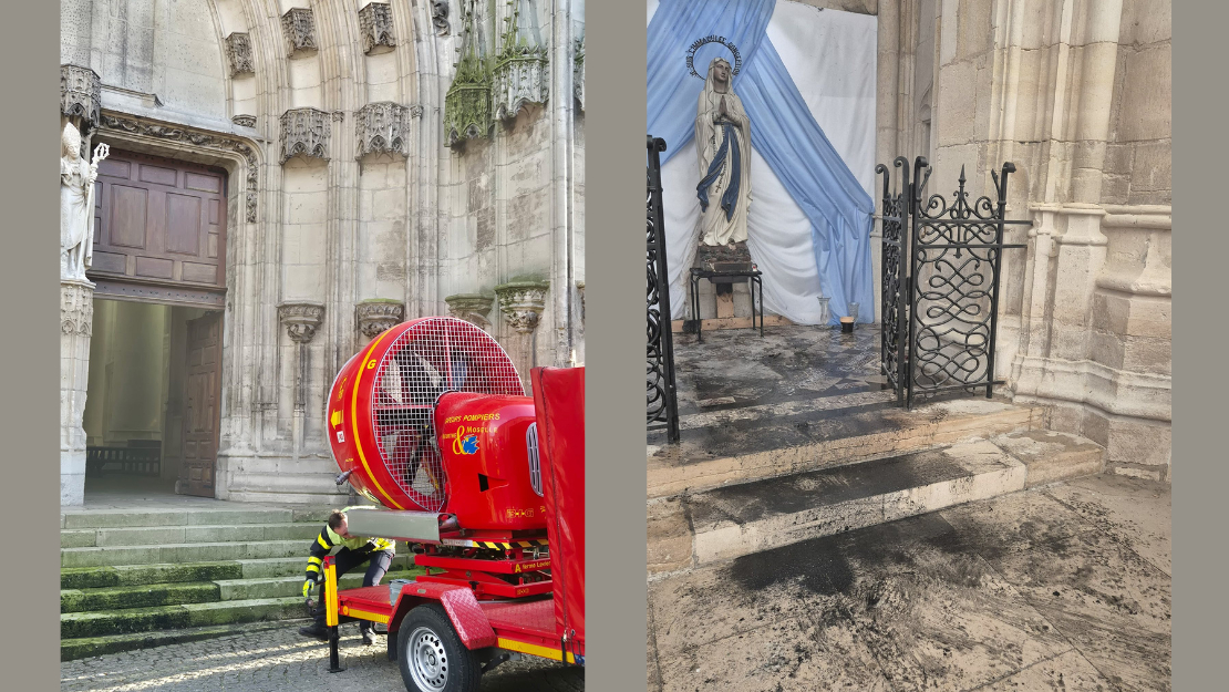 Two small fires were deliberately started inside the Basilica of Saint-Nicolas-de-Port in Meurthe-et-Moselle, France, on 4 February 2026, prompting the evacuation of the historic Catholic church. The fires were quickly extinguished by a volunteer and firefighters.