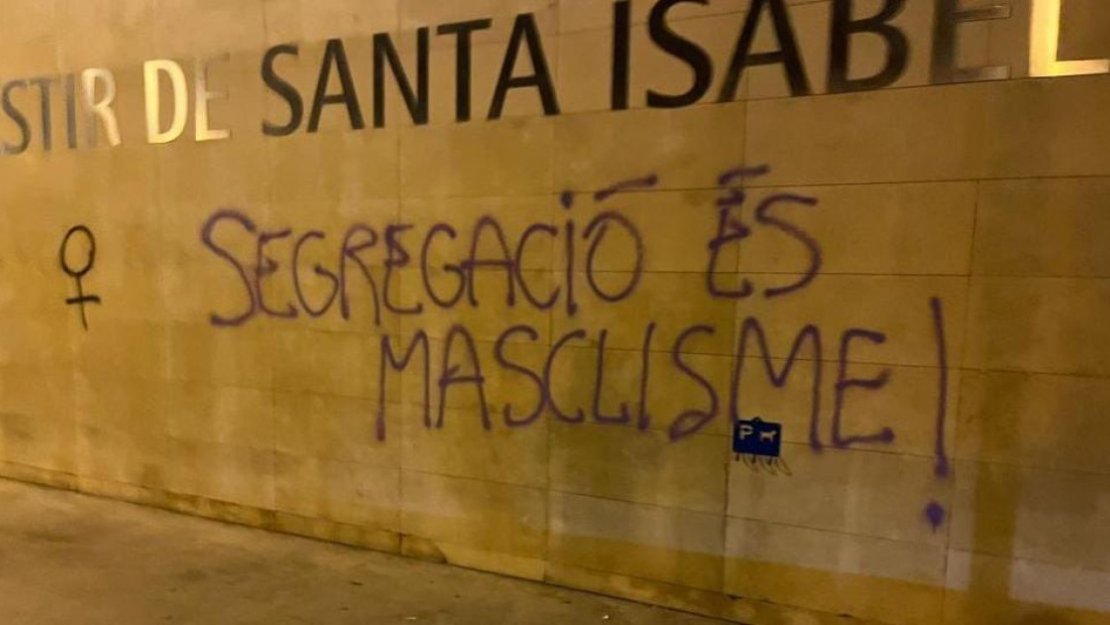 The incident targeted the Real Monasterio de Santa Isabel School, where unknown individuals painted slogans on the exterior wall, including “machists out of Sarrià” and “segregation is machismo”. The messages appear to reference the school’s educational approach, which combines single-sex education in certain classes and stages with co-educational elements.