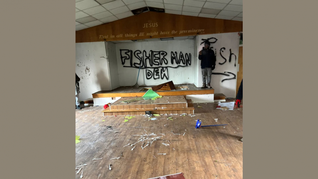 Graffiti left on the walls included the words “fish” and “fisherman den,” referencing the Christian fish symbol. Despite the building being boarded and secured, vandals forced entry multiple times, causing further damage. The destruction was extensive, with plumbing and other interior elements demolished, and total restoration costs estimated at £50,000. The acts were reported as targeted and repetitive, suggesting deliberate intent rather than random vandalism.