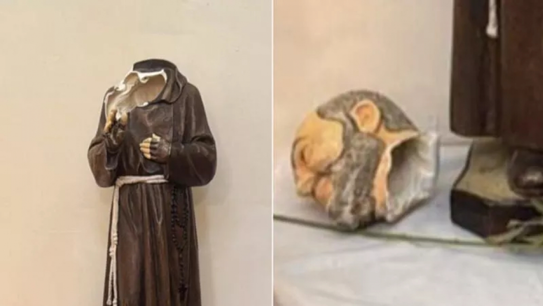 A statue of Padre Pio was found decapitated inside the Abbey Church of San Benedetto in Frosinone. Police confirmed the damage after responding to a report and have launched an investigation to identify those responsible.
