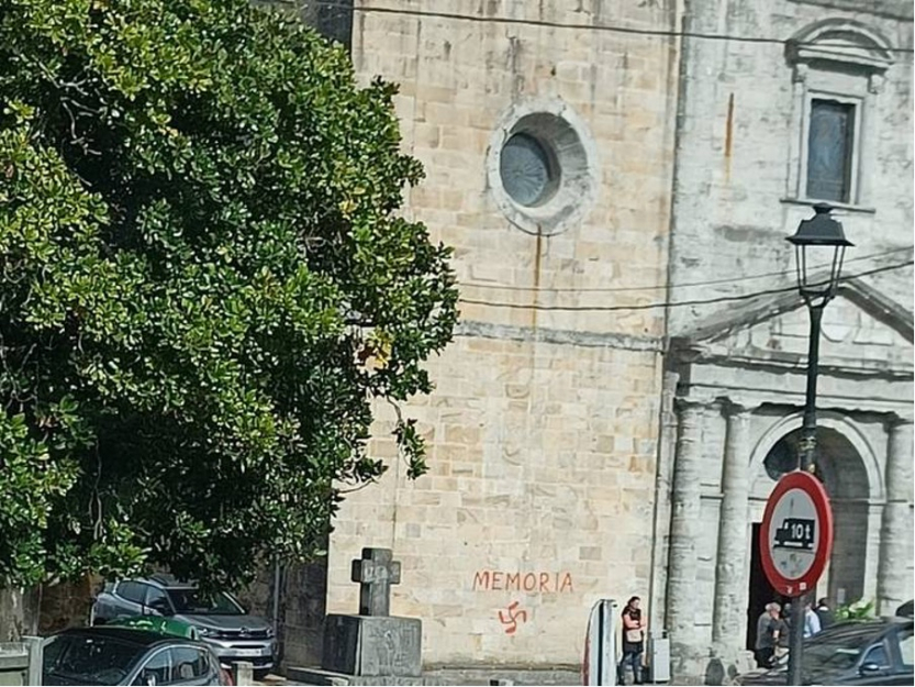 A graffiti with the word "memory" and just below Nazi swastika in red were smeared at the wall of Church of Santa Maria in Marrón in the Cantabria region.