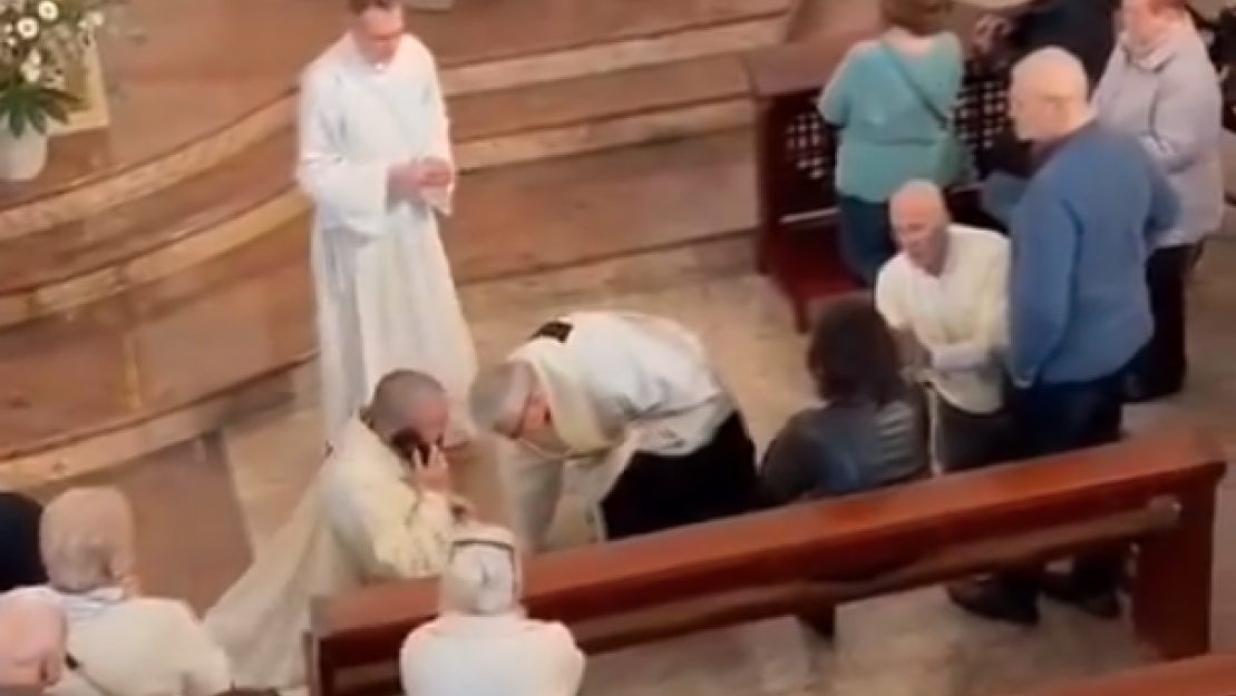 During Mass, while giving Holy Communion, a woman received the host in her hand, but instead of consuming it on the spot, she walked away towards the pews. The priest urged her to consume the Blessed Sacrament, but she began to argue with him aggressively. She then crushed the host with her fingers and threw it on the ground.