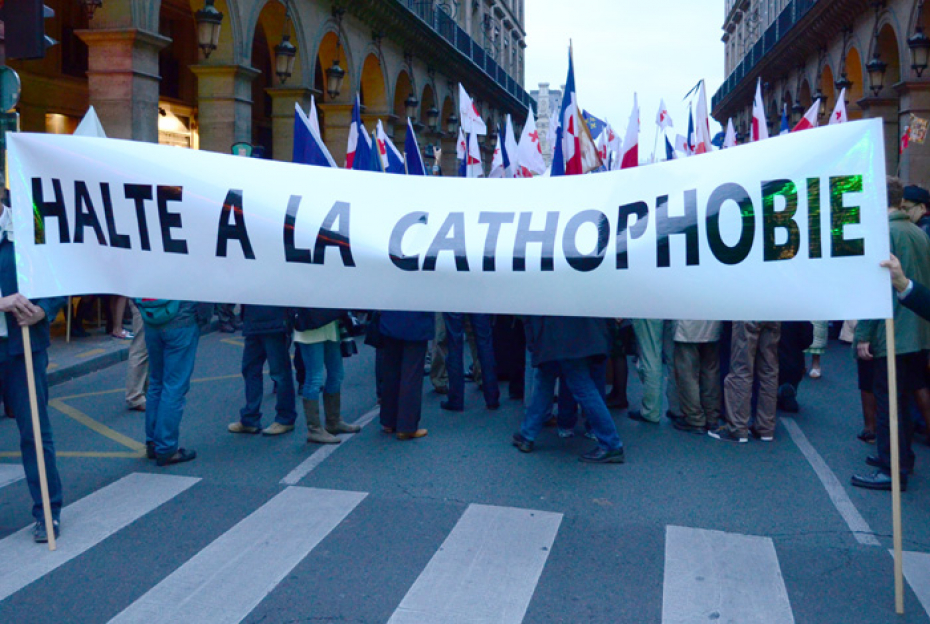 A man was arrested inside a church in Lyon after damaging the tabernacle and a donation box. The act directly targeted objects of central importance to Catholic worship.