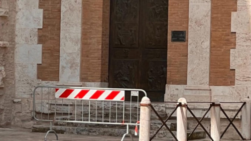 In Perugia, unknown perpetrators vandalised the Cathedral of San Lorenzo, forcibly detaching the metal railing in front of the Jubilee Door created by artist Artemio Giovagnoni. The damage occurred on the side of the cathedral and required considerable force, as the railing had been securely fastened to both the travertine column and the pavement.
