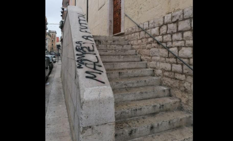 San Benedetto church in Brindisi was found smeared with red paint. The ancient portal and another entrance of the church were smeared, and "Palestine" was written on the stairs.