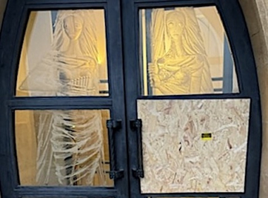 As reported on January 12, vandals have caused considerable damage to the iconic glass panes at Guildford Cathedral. The door, which had sentinel angels engraved by a renowned glass artist, has been smashed. The Cathedral team said they were devastated by a “senseless act of vandalism at a holy place.”
