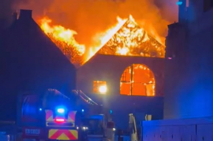 A major fire severely damaged the former King’s Hall Methodist Church in Southall, West London. Police and fire investigators are treating the blaze as suspected arson.
