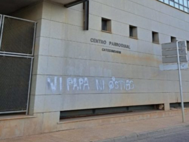 On 22 October 2025 graffiti reading “ni papa ni ostias” was found painted on the exterior of the Parroquia Nuestra Señora del Pilar in Catarroja