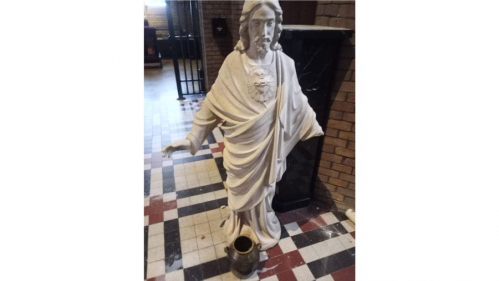 A statue of Christ, installed just a week earlier, was found broken.